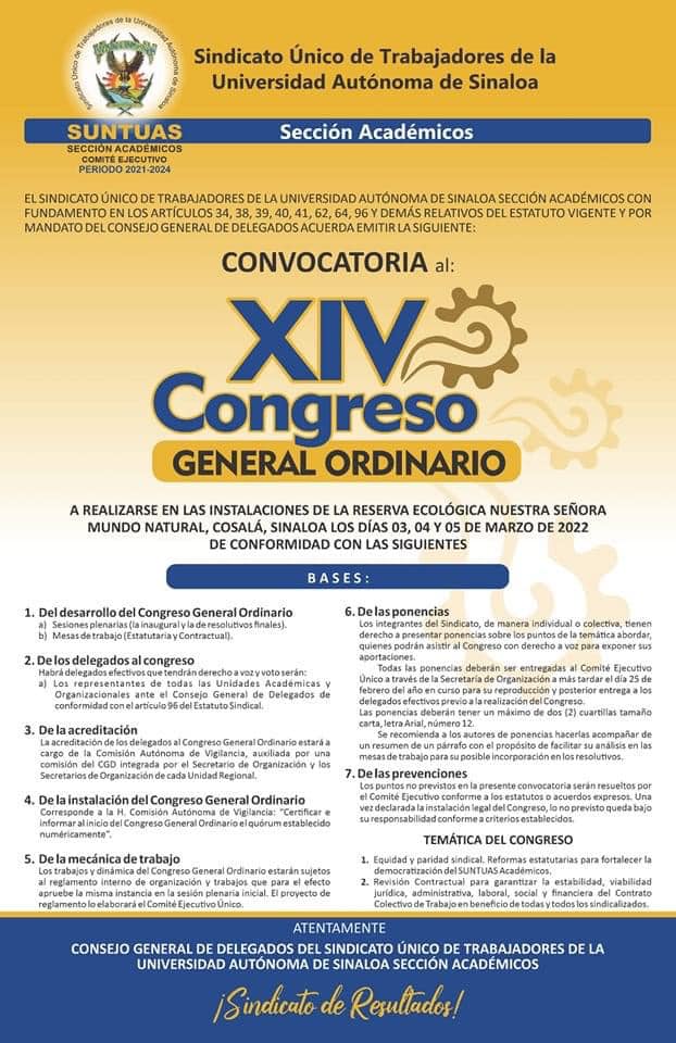 Convocatoria para el XIV Congreso general ordinario del SUNTUAS ACÁDEMICO