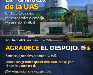 La “Grandeza” de la UAS: Un discurso de éxito construido sobre el despojo y la sumisión sindical Por: Gabriel Olivas | 13 Marzo de 2026