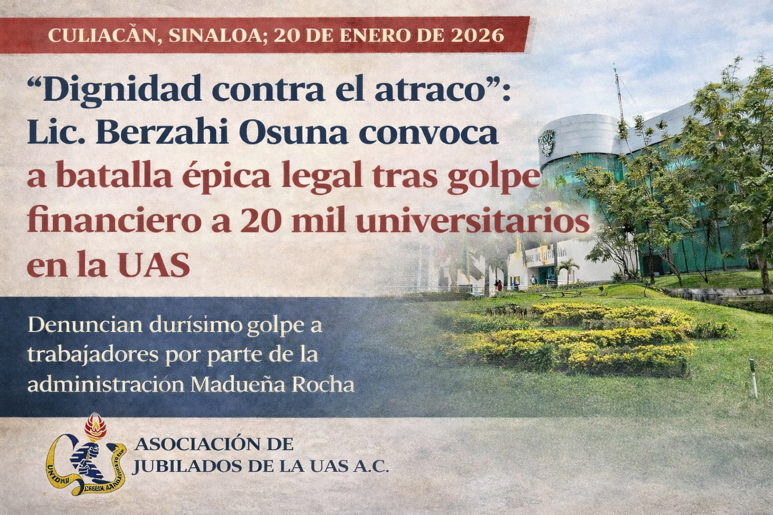 Culiacán, Sinaloa. — Lo que comenzó como un movimiento gremial se ha transformado hoy en el principal bastión de resistencia jurídica y social en Sinaloa. La Asociación de Jubilados de la Universidad Autónoma de Sinaloa A.C., encabezada por la Maestra Florina García Bórquez, se ha consolidado como el eje de apoyo universal para enfrentar lo que califican como una “agresión financiera” por parte de la administración del rector Jesús Madueña Molina.