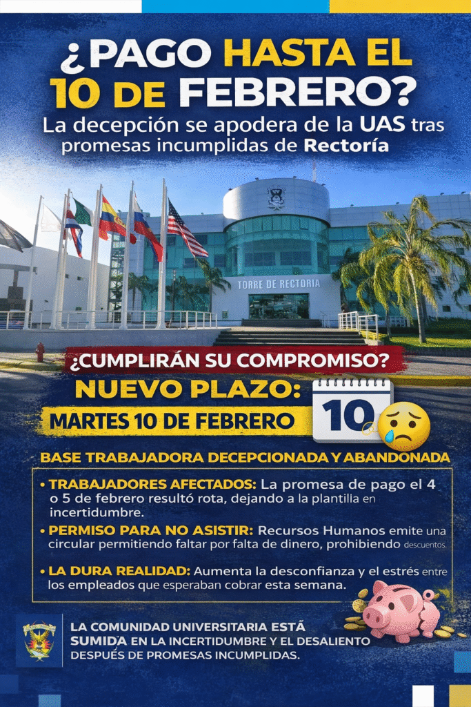Este anuncio ocurre apenas semanas después de que el gobernador Rubén Rocha Moya ofreciera públicamente adelantos presupuestales para evitar crisis de pago, lo que hace que los trabajadores se pregunten por qué la Rectoría ha preferido llegar al punto de suspender de facto la obligatoriedad de la asistencia en lugar de aceptar los recursos estatales.