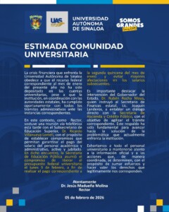 La base trabajadora de la Universidad Autónoma de Sinaloa atraviesa uno de sus momentos más críticos de incertidumbre y desaliento. A pesar de las promesas directas del Rector, Dr. Jesús Madueña Molina, quien había asegurado que el pago de la segunda quincena de enero quedaría cubierto a más tardar este miércoles 4 o jueves 5 de febrero, los depósitos no llegaron. Hoy, un nuevo comunicado oficial desplaza la esperanza hasta la próxima semana, desatando una ola de decepción entre el personal académico y administrativo.